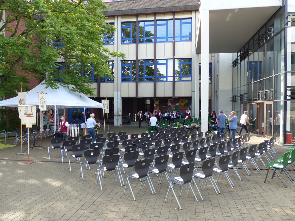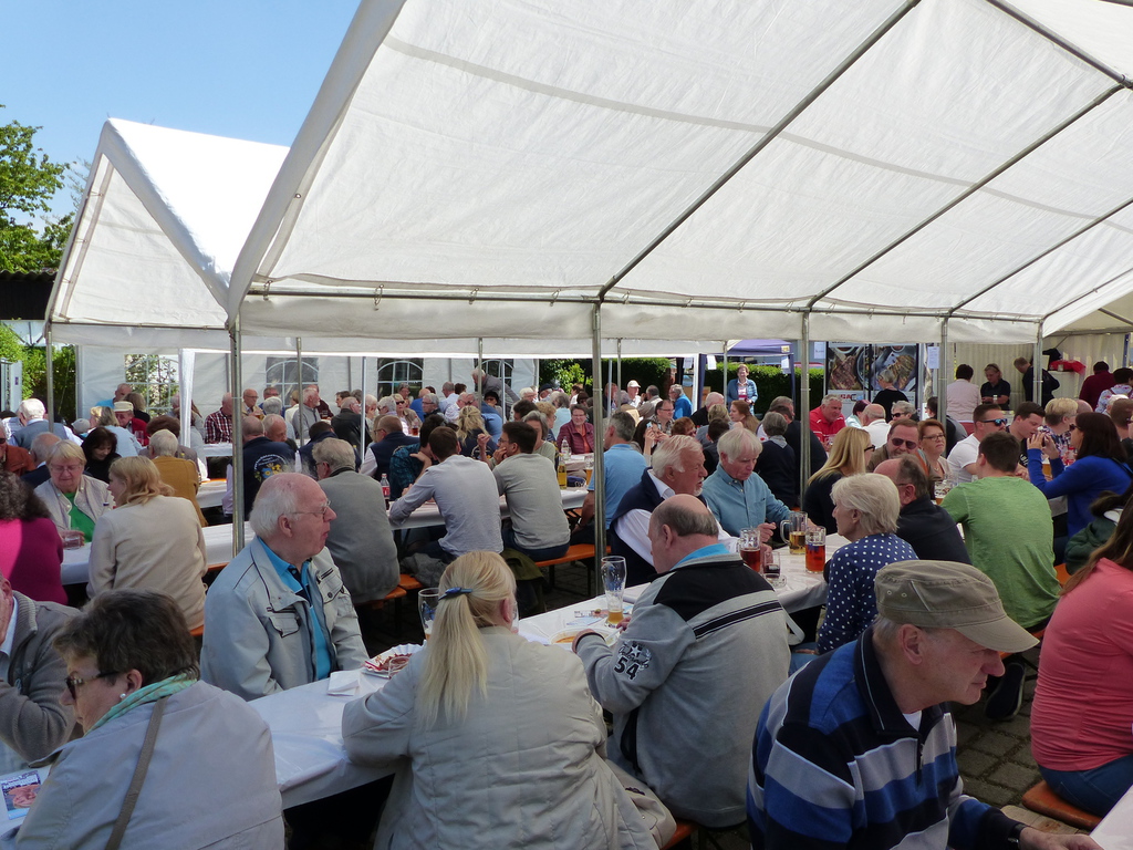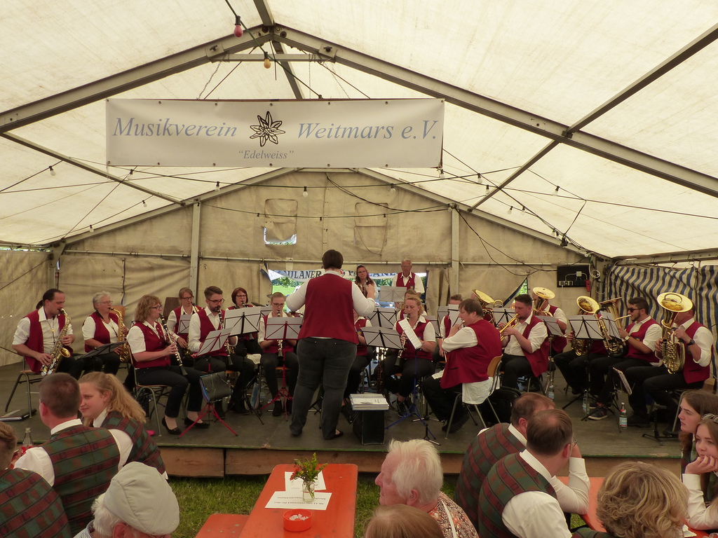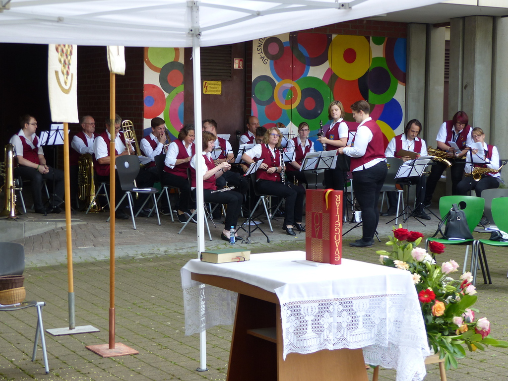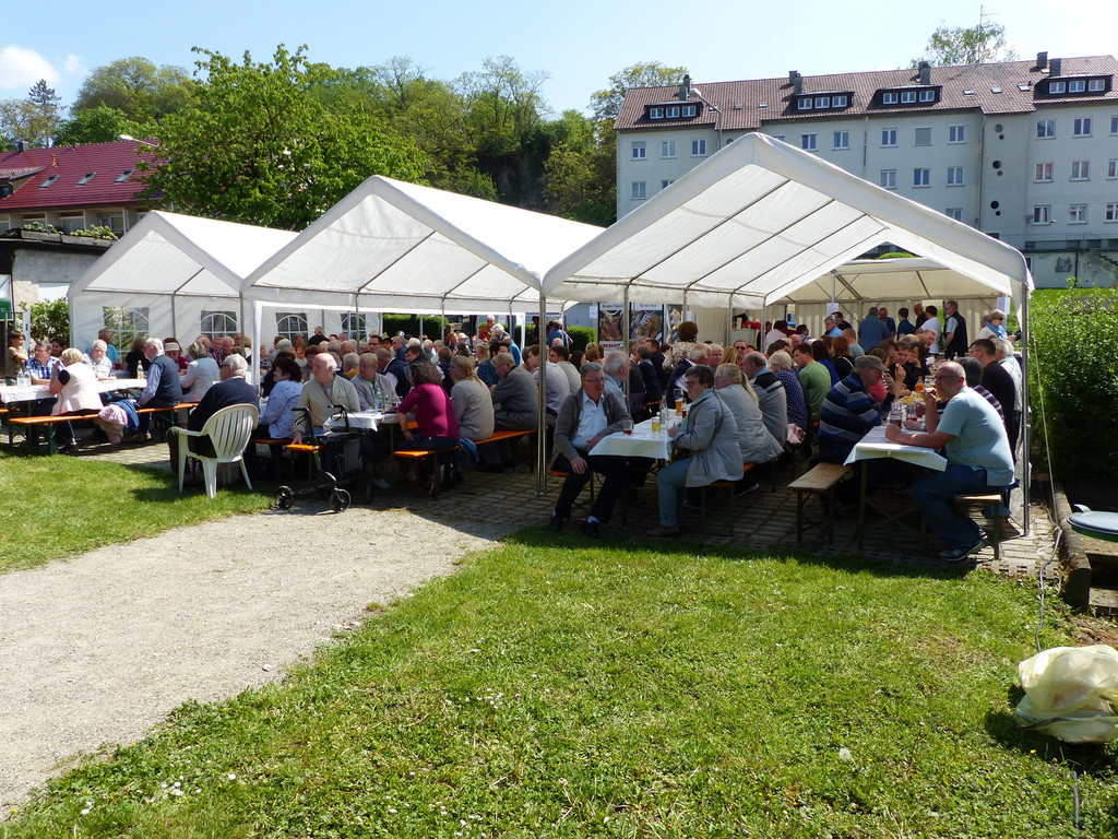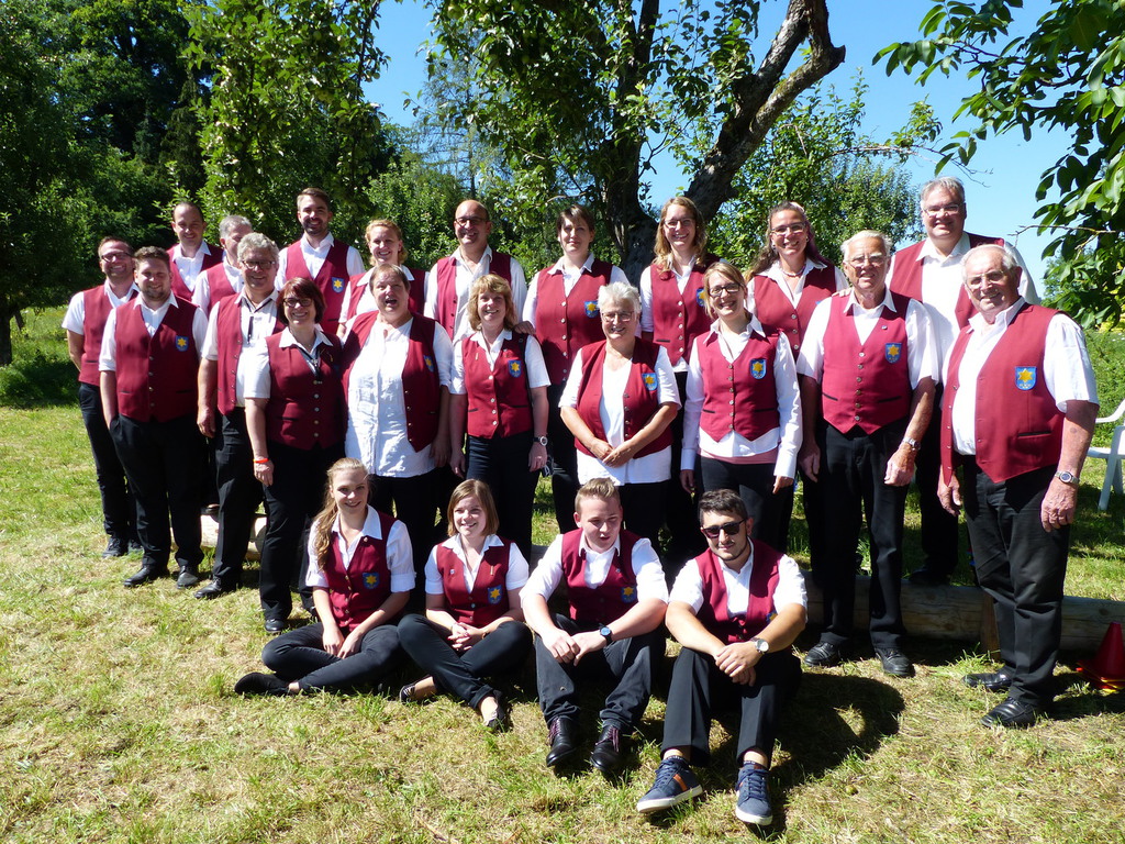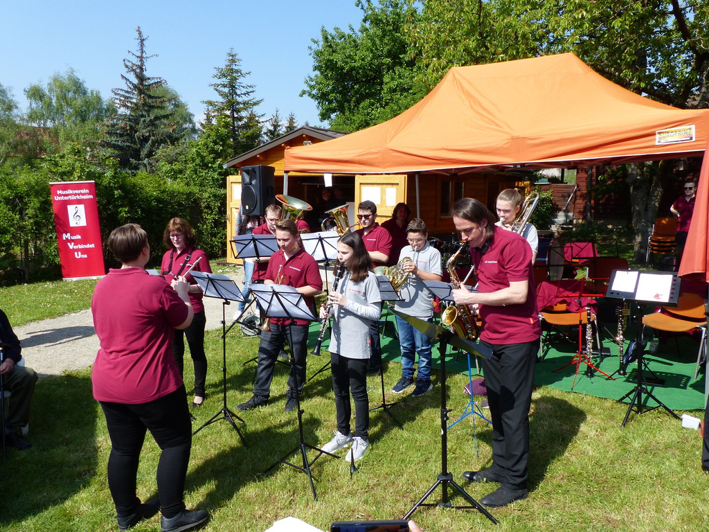 die leckeren Kuchen schmecken zu lassen, als da eine ganze Menge Leute mit Instrumenten reingekommen sind. Und die haben dem Eberhard ein Ständchen gespielt. Das war die Aktivenkapelle des