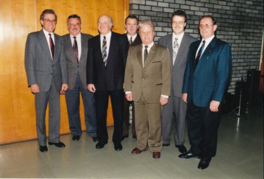 Paul Warth, Hermann Warth, Heinz Kimmich († 1996), Robert Munk, Rudi Dreher († 1997), Rainer Strauss, Gerhard Hummel (v.l.n.r.)