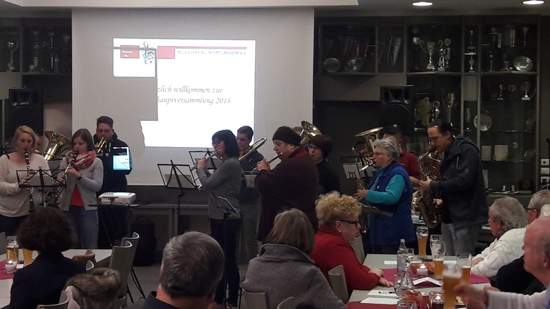 Die Hauptversammlung des Vereins, wird immer mit einem Musikstück unseres Orchesters eröffnet. Die Mitglieder des Musikvereins bekommen danach durch Berichte der Ausschuss- mitglieder einen Überblick über Veranstaltungen, Aktivitäten und Finanzangelegenheiten des vergangenen Geschäftsjahres. Folgende Funktionsträger berichten dabei über ihre Bereiche: 1. Vorsitzende, 2. Vorsitzende, technischer Leiter, Jugendleiter, Musikvorstand, Kassier und Kassenprüfer. In jedem Jahr findet die Neuwahl einiger Ausschussmitglieder statt. Zum Abschluss findet noch ein Ausblick auf das nächste Geschäftsjahr statt.