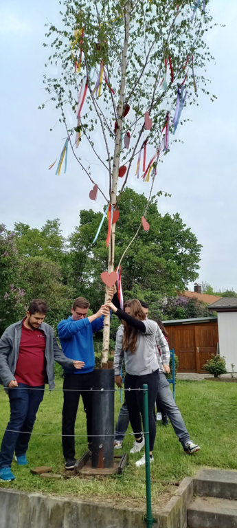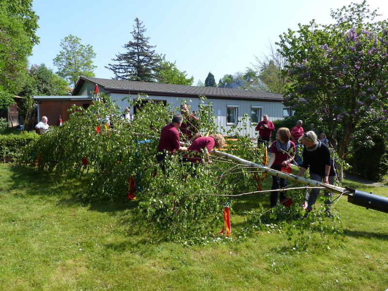 Der Vorstand, Klaus Ruf hat nach langem Suchen auch eine Birke in der Lindhalde in Krummenacker gefunden, die geschmückt nun den Vereinsgarten ziert.