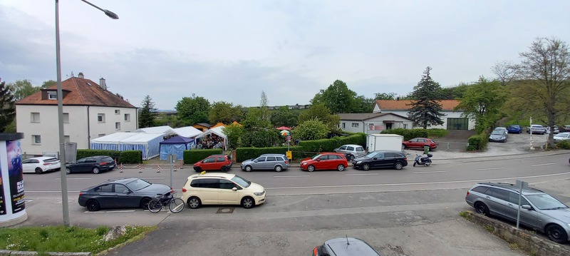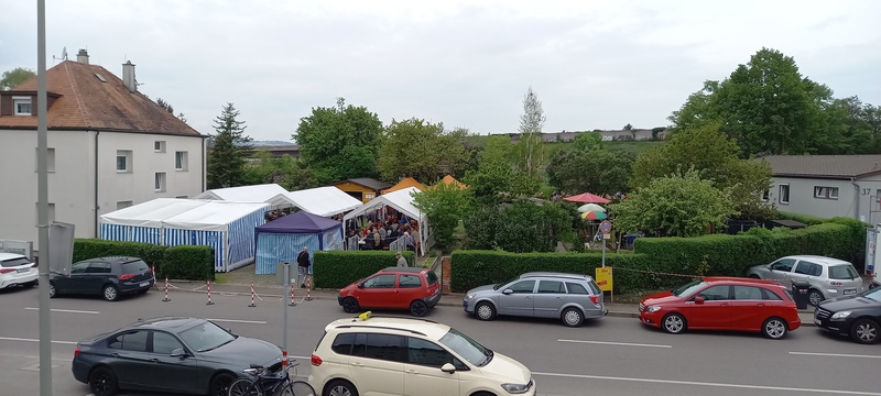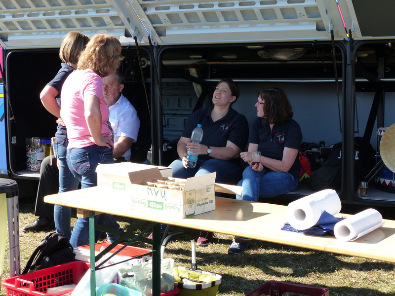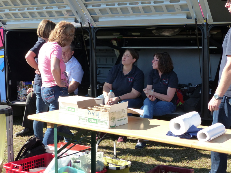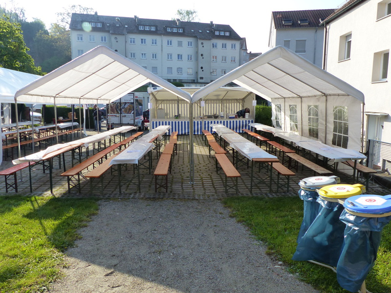 Samstags trafen sich die freiwilligen Helfer zum Aufbau, noch im Regen. Zelte, Tische, Stühle und Kühlschränke hatten schnell ihren Platz, alles andere wurde Sonntagvormittag erledigt, schon ohne Regen.