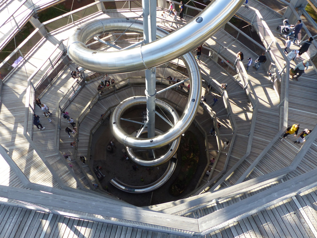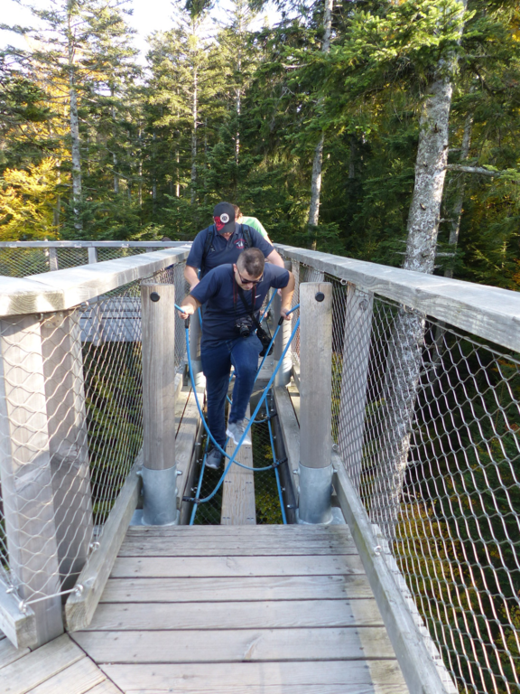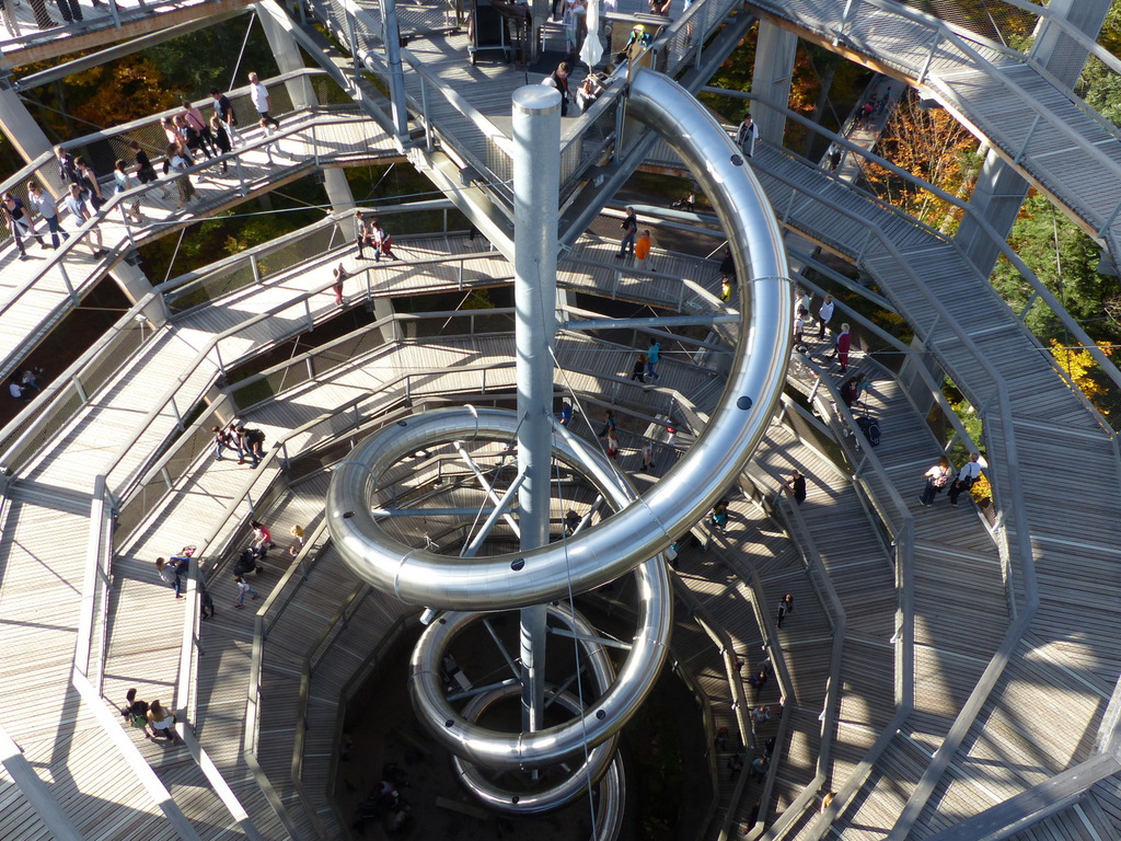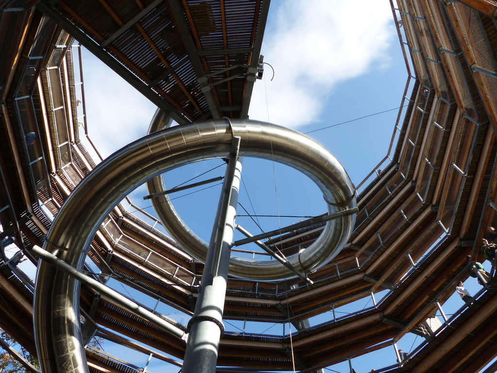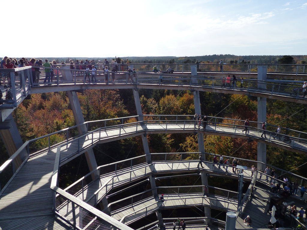 Nach der sonnigen Pause ging es weiter Richtung Bad Wildbad. Dort fuhren wir mit der Sommerbergbahn – einer Standseilbahn – von 428 m auf 726 m Höhe. Ein Großteil der Teilnehmer lief durch den 1250 m langen Baumwipfelpfad und auf den 40 m hohen Aussichtsturm, mit seiner 55 m langen Rutsche. Einige Teilnehmer besuchten aber auch das Panoramarestaurant, beziehungsweise den Biergarten an der Bergstation.