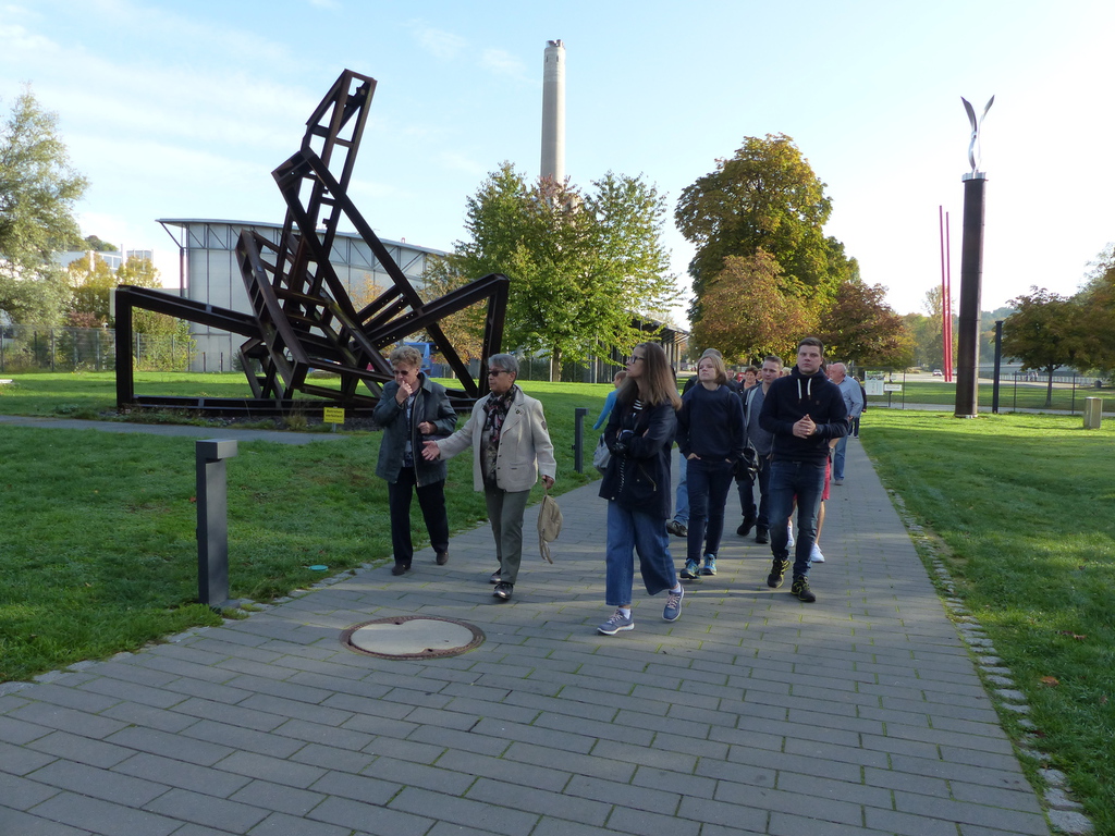 Um 9:30 Uhr haben wir uns am Storchenbrunnen am Bahnhof getroffen, um dann um kurz vor 10:00 Uhr mit der S-Bahn S1 und dann mit der S4 Richtung Erdmannhausen zur starten. Bei bestem Herbstwetter haben sich 16 Personen auf den Weg gemacht. Die S4 stand am Hauptbahnhof bereits in der Haltestelle und wir sind alle schnell hinüber gesprintet. Puhhh geschafft! Nach ca. 40 Minuten sind wir dann in Erdmannhausen angekommen. Kurz ein Beweisfoto und dann konnte es losgehen.
