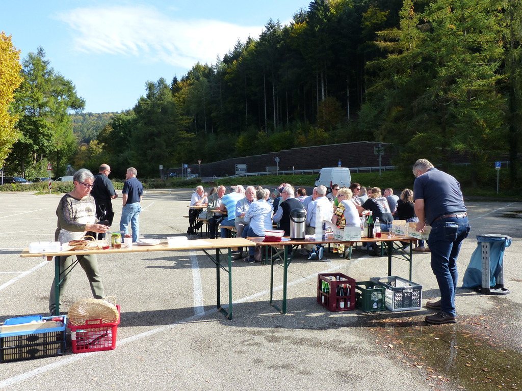 Nach dem Besuch des Gasometers fuhren wir zum Parkplatz beim Freibad in Neuenbürg, wo wir eine ausgedehnte Vesper- und Getränkepause machten. In diesem Jahr hat der Verein aufgrund des 30jährigen