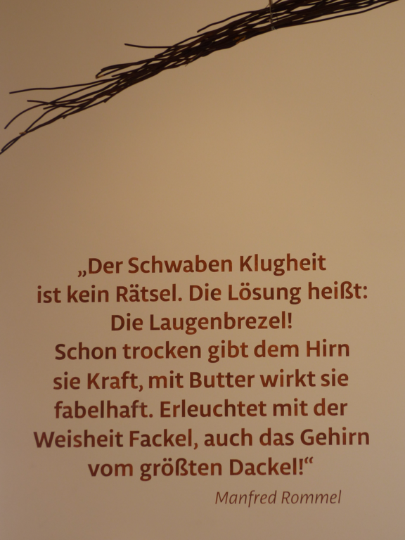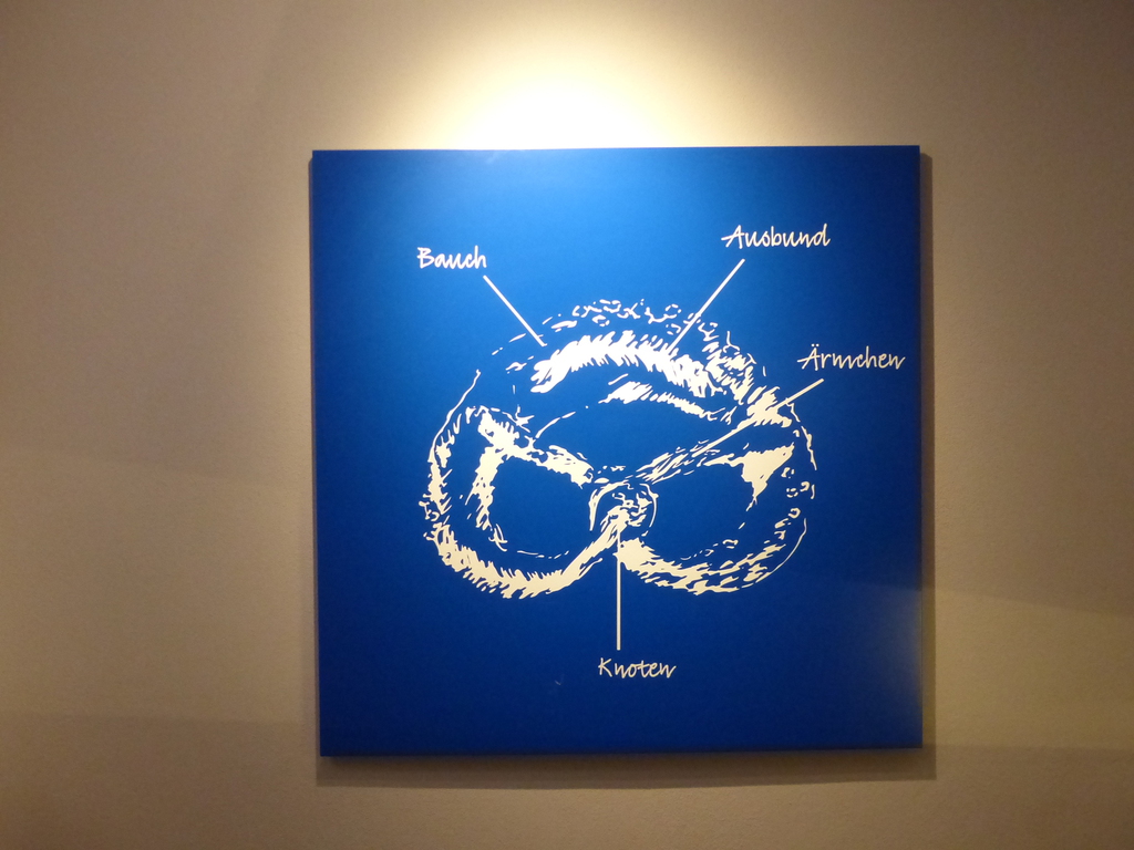 Durch eine kleine Ausstellung mit der Darstellung von Kunstbrezeln wie, Holzbrezel, Steinzeitbrezel, Fußballerbrezel oder Brezel mit Mund, strebten wir dann wieder dem Ausgang zu. Im Ein- bzw. Ausgangsbereich ist noch ein kleiner Souvenirladen. Zum Abschluss erhielt jeder eine Houber-Brezel zur Verköstigung. Lecker, auch wenn mir die Echte mit dem weichen Teil lieber ist. ;-)