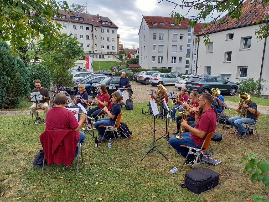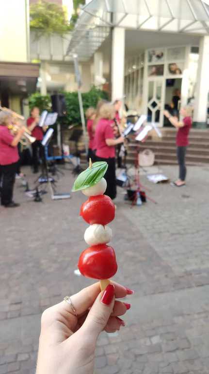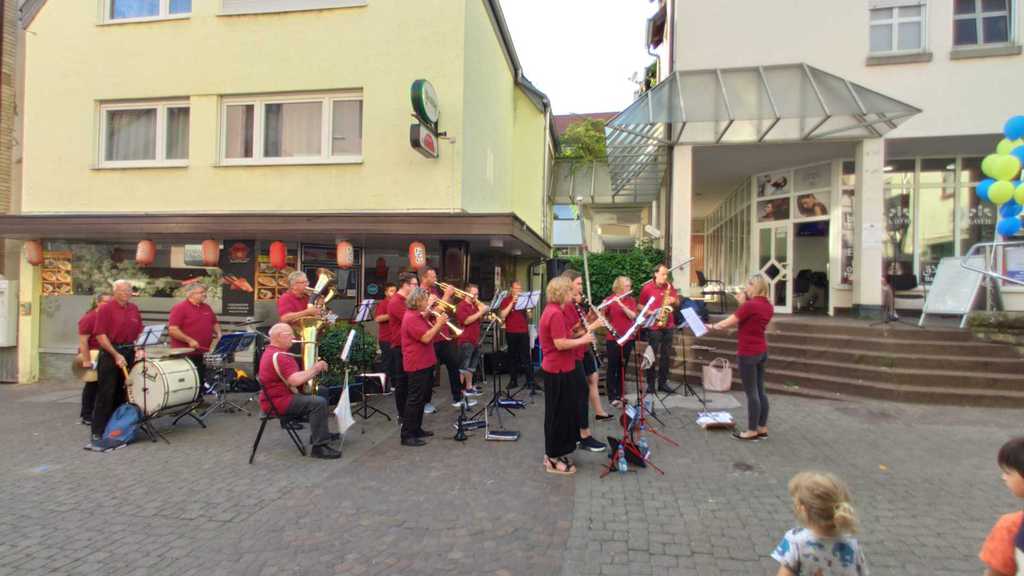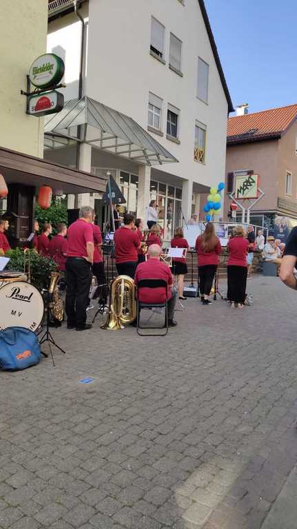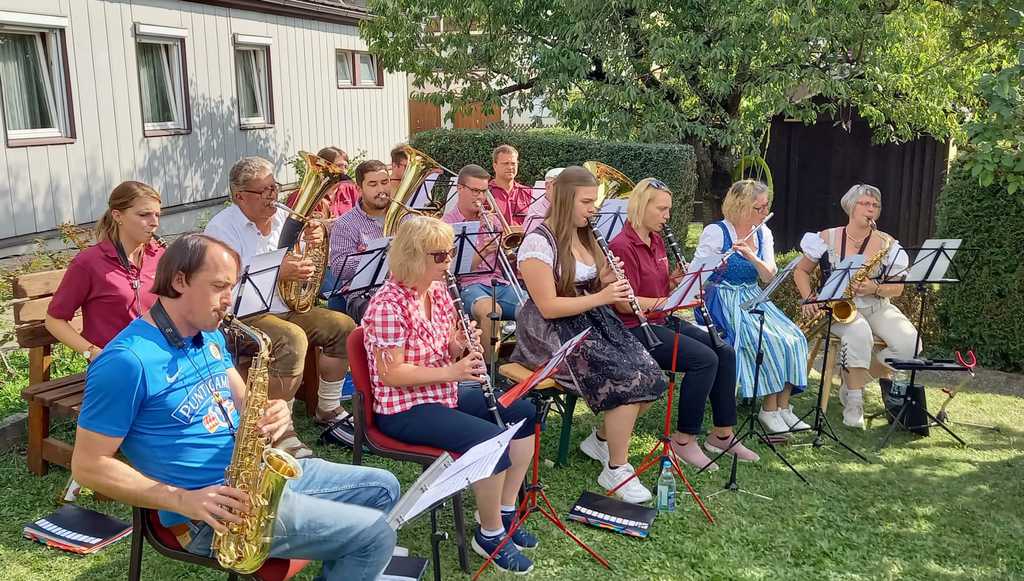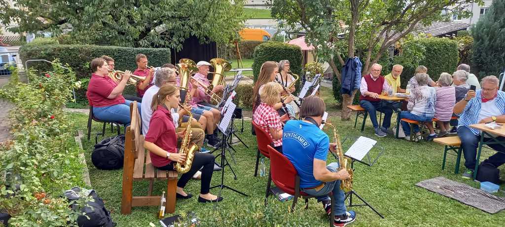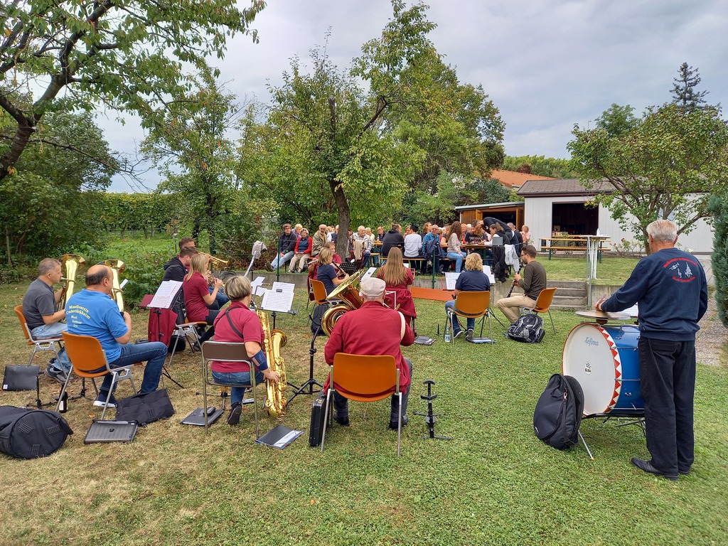 Die Menschen genossen ihre wiedergewonnene Freiheit, ohne Maske im Freien zu sitzen und sich mit jedem zu unterhalten. Zusätzlich spielte die Aktivenkapelle des Musikvereins, was großen Anklang