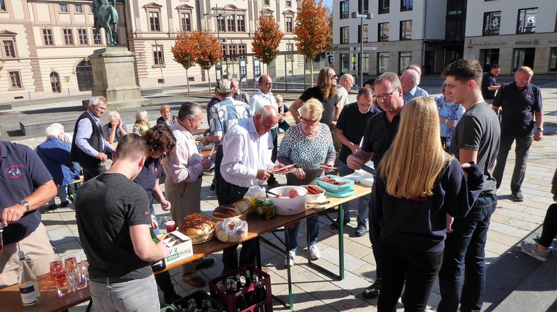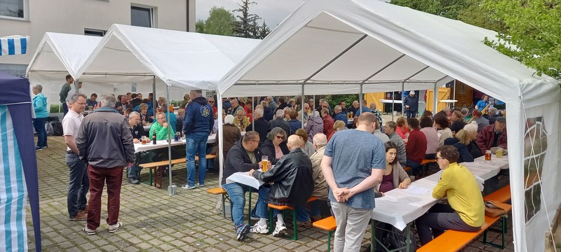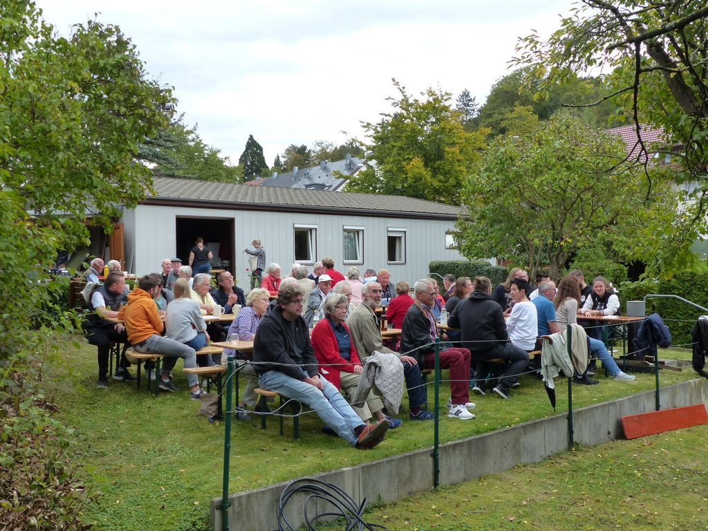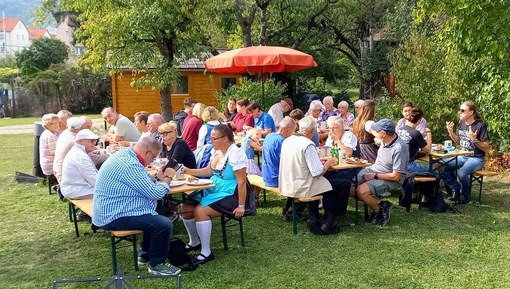 Auch dieses Jahr haben wir am 3. Oktober wieder unseren Frühschoppen veranstaltet. Das Wetter war klasse, wir hatten spätsommerliche Temperaturen, mit 28 °C, fast etwas zu warm.