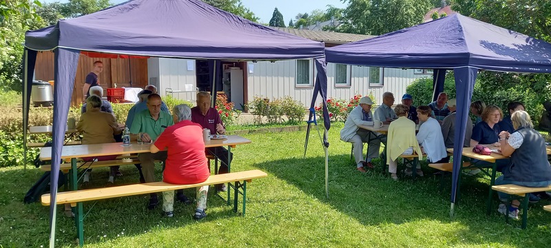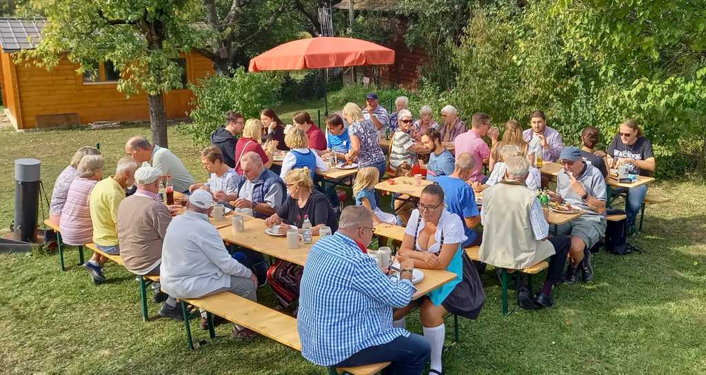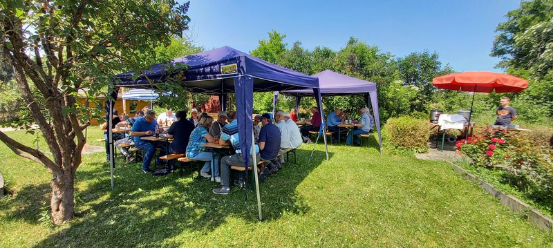 Vormittag unterhielt. Bald mussten zusätzliche Sitzgarnituren aufgestellt werden und auch die waren schnell besetzt. Nachmittags wurde das Wetter noch einmal besser, als es am Vormittag schon war.