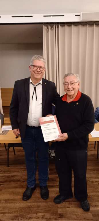 Vor der Pause wurden Michael Warth und Jürgen Dreher mit der Fördernadel in Bronze für ihre 10-jährige Tätigkeit als Funktionäre geehrt. Nach einer kurzen Pause wurden Wahlen durchgeführt. Zunächst