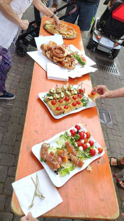 Kurz nach der Begrüßung durch Klaus konnte auch schon die „Schlacht“ am Buffet beginnen und die hungrigen Mägen unserer Gäste konnten befüllt werden. Es war genug von allem da, so dass es natürlich einen zweiten (oder gar dritten) Teller mit Häppchen reichte.
