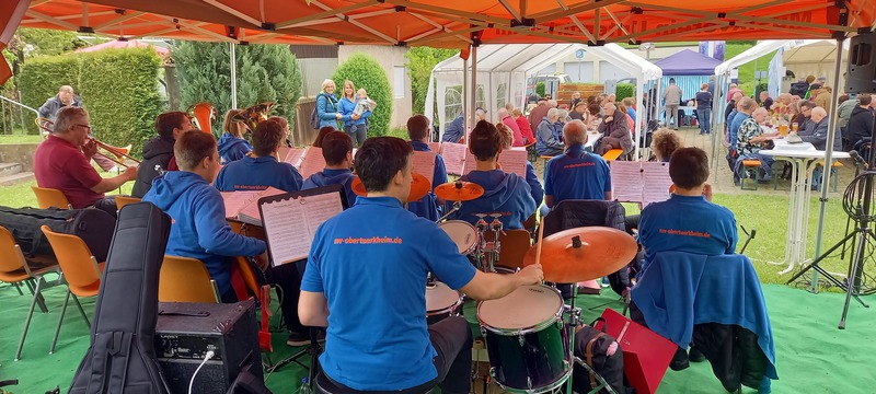 Ab 11:00 Uhr strömten die Gäste auf das Vereinsgelände, versorgten sich mit Speis und Trank und suchten sich einen gemütlichen Platz, um dem Musikverein Obertürkheim zuzuhören, der die Besucher am