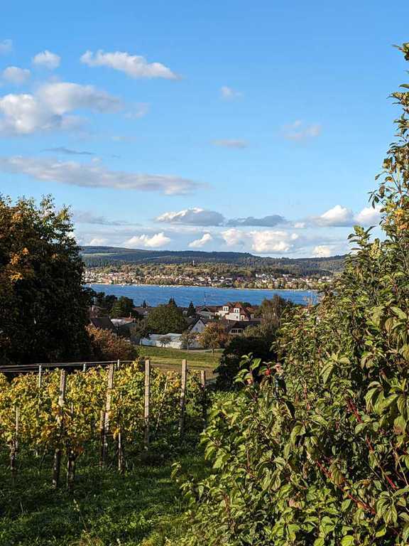 Leicht gestärkt, machten wir uns dann wieder auf den Weg quer durch Erdmannhausen Richtung Affalterbach, zum dortigen Lemberg. Von der Seite aus Erdmannhausen ist der Ausblick auf Felder und den Wald noch nicht sonderlich spektakulär. AAAAber, als wir dann durch den Wald durch waren und das letzte Stück mit einigen Stufen erklommen hatten, kamen wir auf einen „Waldrand-Wengert-Weg“. Dieser eröffnete uns eine fantastische Aussicht vom Hohen Asperg, dem Grünen Heiner, über Zuffenhausen, Wangener Höhe mit Fernsehturm, Fernmeldeturm, über die Grabkapelle auf dem Württemberg zum Kernenturm ….. Echt super! Beim Aufstieg zu dieser Aussicht, hatten wir noch einen kleinen Igel gesehen, welcher sich durch uns aber dann doch gestört fühlte und sich weiter auf den Weg ins Gebüsch machte. Am Ende des Weges, am Waldrand, war dann der Kulturbiergarten. Dort sind wir eingekehrt und haben uns reichlich für den Rückweg gestärkt. Von Schnitzel, über Spare Ribs und Kuchen sind super leckere Sachen auf der Speisekarte. Gegen 14.30 Uhr haben wir uns dann wieder auf den Rückweg gemacht.