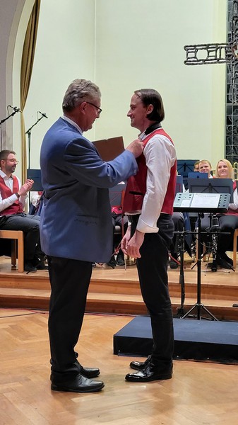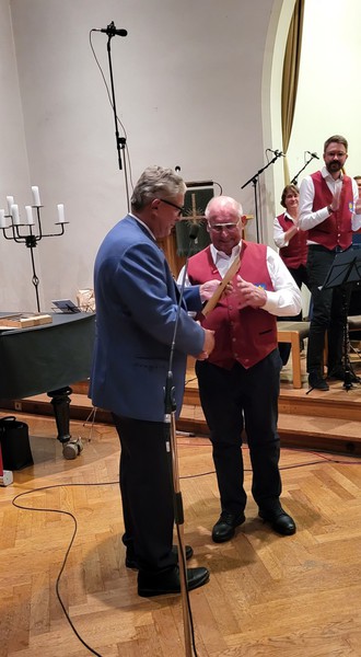 Eine besondere Anerkennung wurde dem Ehrenvorsitzenden Gerhard Hummel zuteil, der vom Kreisverbandsvorsitzenden Eberhard Krause für sein langjähriges musikalisches Ehrenamt in diversen Funktionen die seltene Gottlob-Bopp-Medaille überreicht bekam.